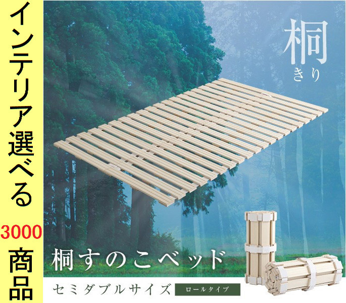 睡眠用すのこ 120×200×2.5cm 木製 桐 ロール収納可能 セミダブル ベージュ色 YHKIRRSD