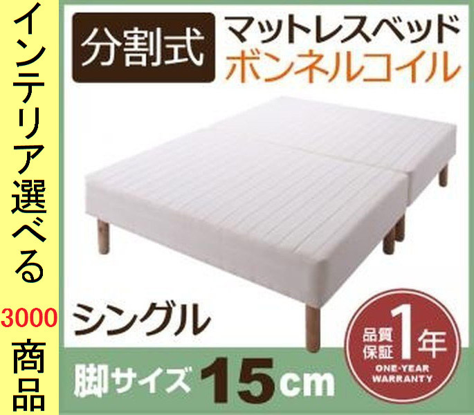 ベッド マットレスベッド 97×195×35cm ポリエステル ボンネルコイル 2分割可能 シングル 脚15cm ホワイト色 YC840109283