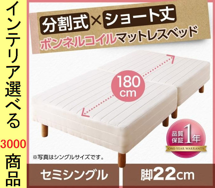 ベッド マットレスベッド 80×180×42cm ポリエステル ボンネルコイル 2分割可能 セミシングル ショート丈 脚22cm アイボリー色 YC8500026666