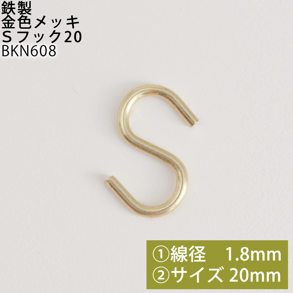 S フック 中 20 メッキ 線径1.8mm 20mm BKN608(P)
