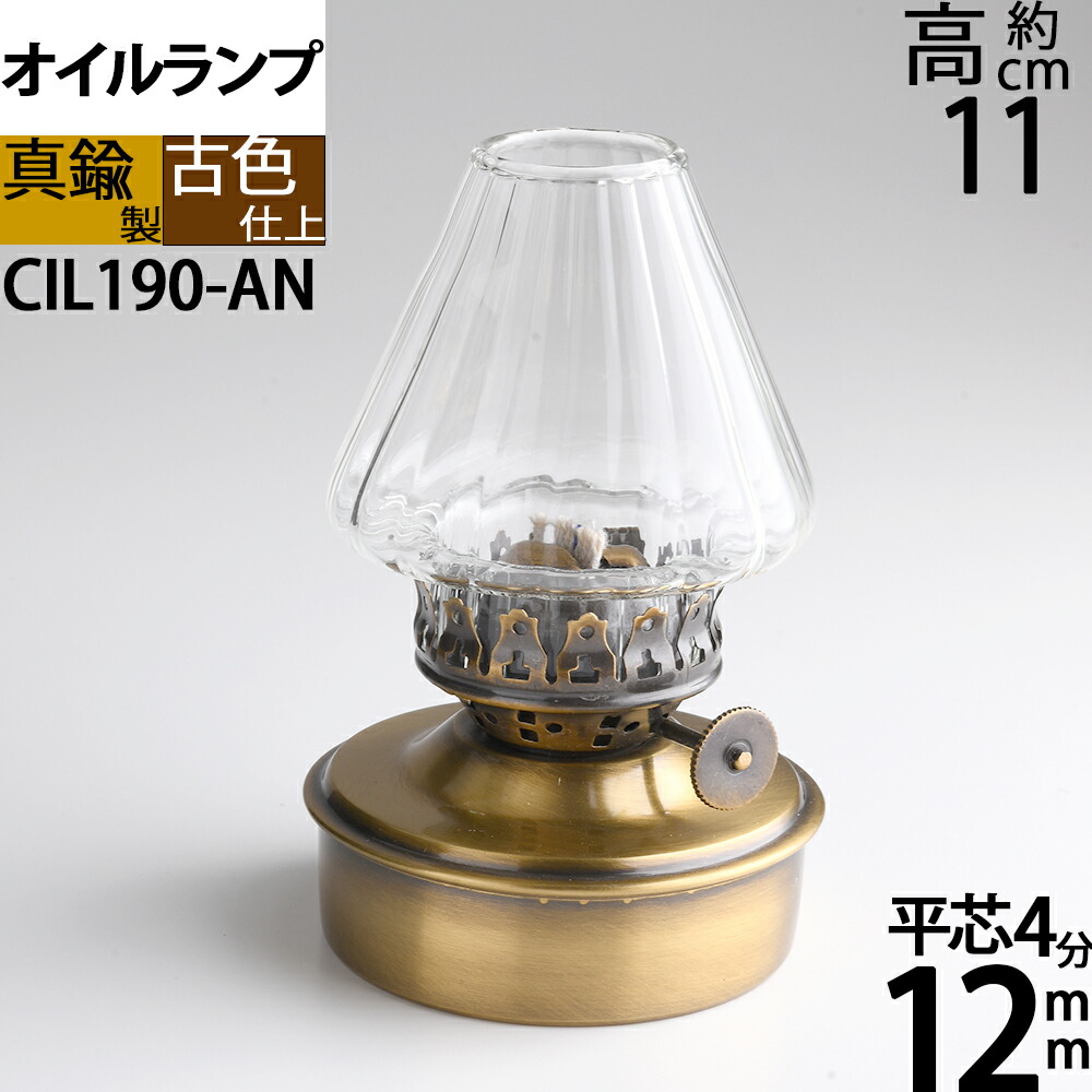 真鍮素材の魅力にあふれた、昔ながらの手作りの風合いの強い味わいのあるランプです。平芯4分芯(12mm)仕様のオイルランプで、小型の棒芯ランプに比べ明るく、安定した炎です。
