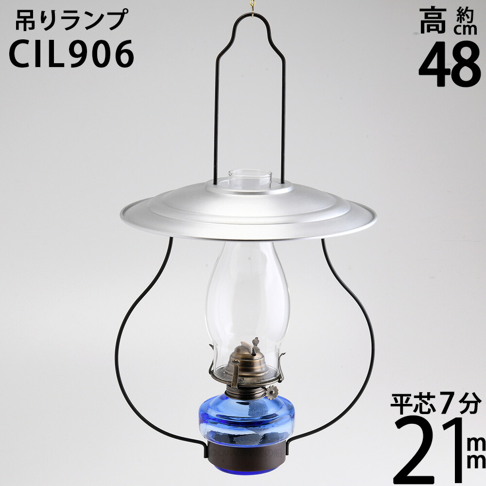 高級 民芸調山小屋オイルランプ-7分芯オイルランプ(吊りランプ7分芯 銀傘 油壷 ブルー AN)(CIL906)