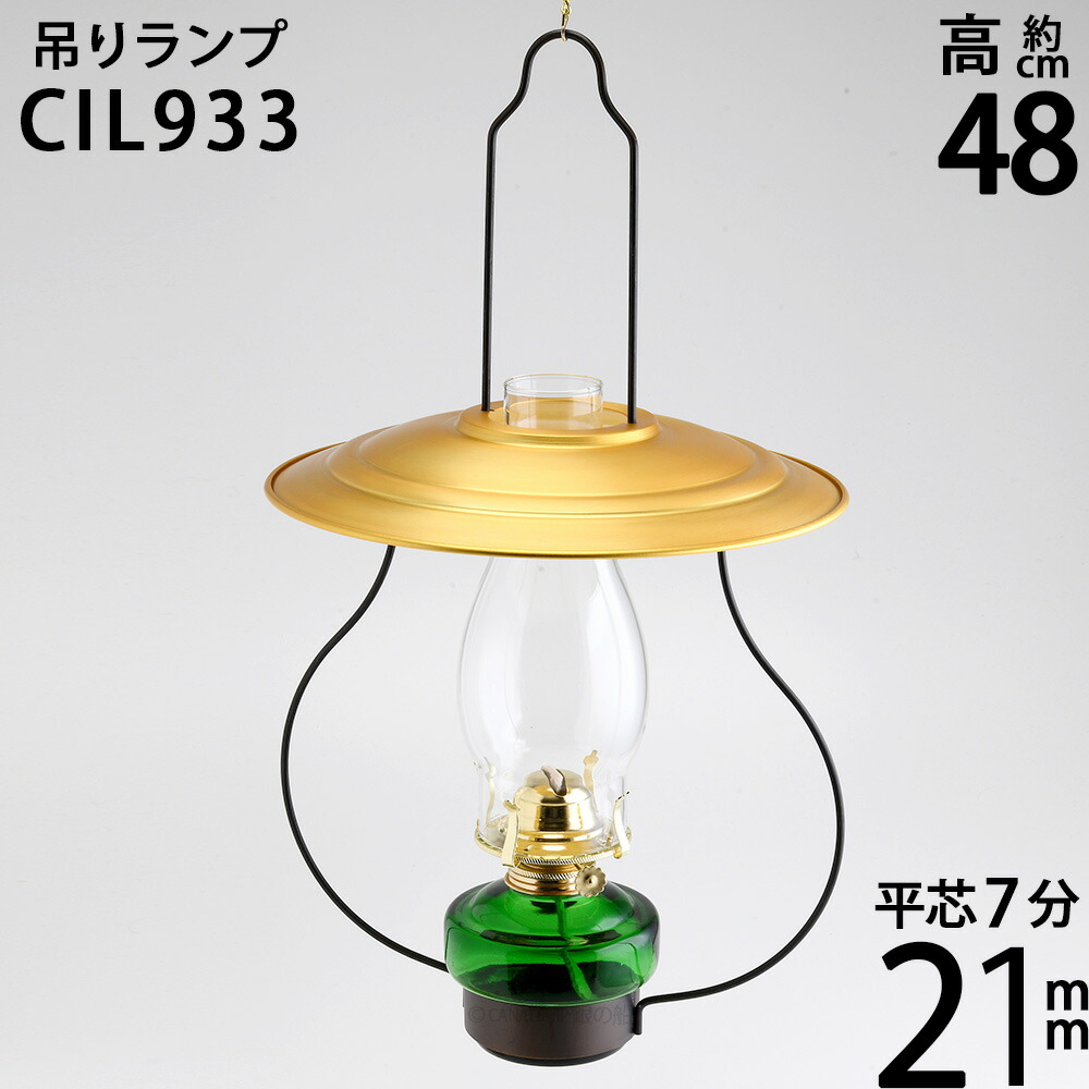 高級 民芸調山小屋オイルランプ-7分芯オイルランプ(吊りランプ7分芯 金傘 油壷 グリーン GO)(CIL933)
