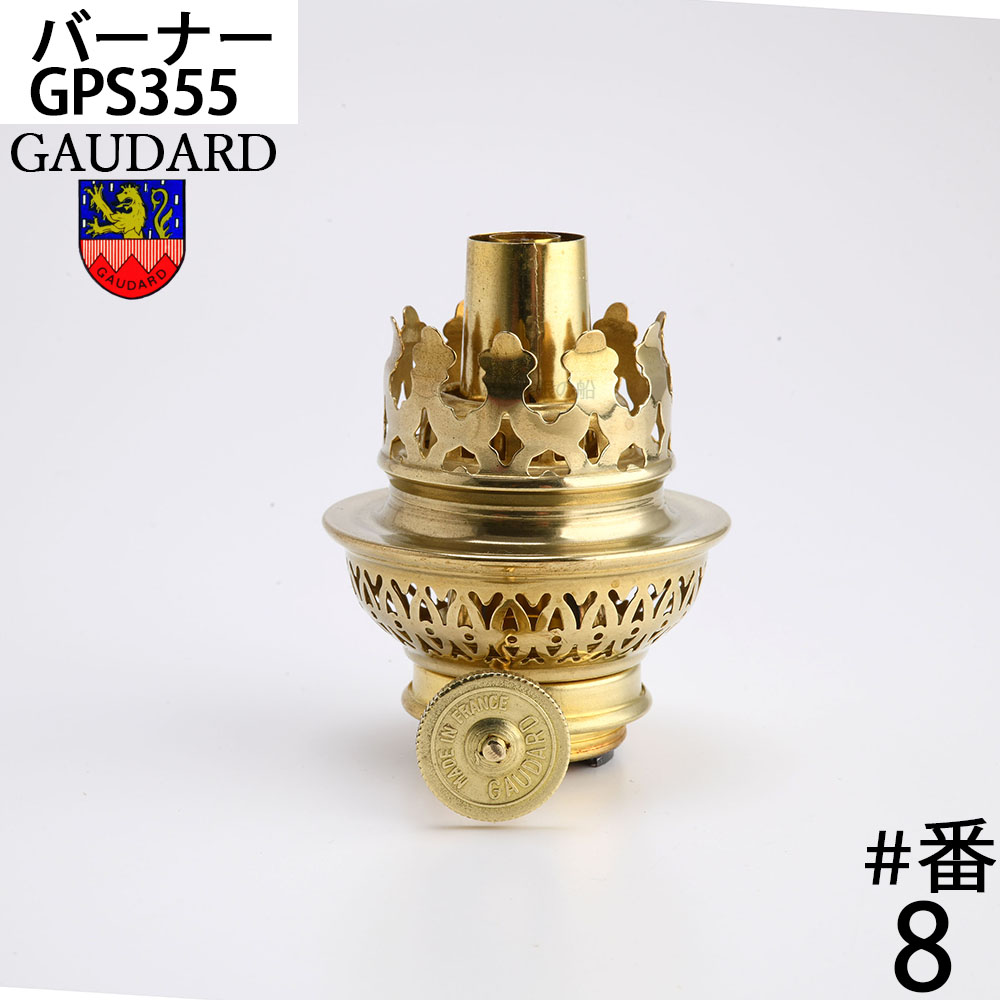 真鍮製の巻芯バーナーの傑作、フランスガーダード社製のオイルランプバーナーです。同社は、昔から脈々と受け継がれてきた独特のプレスの技術により大変美しく、高性能のバーナー生産しています。本体は真鍮無垢材にこだわった贅沢かつエレガントな作りのバーナーです。カラー(口金)の無い油壺に取り付ける際には、専用カラー、カラー8番巻芯 GPS374をお求め頂き、カラーを油壷に接着後、バーナーを装着してください。オイルランプの自作、また古くなったランプの補修にお使いください。バーナー付属の芯は38mmです。