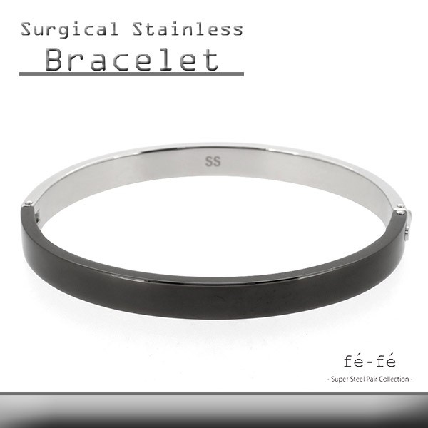 サージカルステンレス バングル メンズ シンプル ブラック ツートーン ブランド fe-fe 金属アレルギー ブレスレット プレゼント 爆買