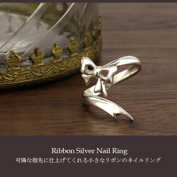透かし リボン ネイルリング フリーサイズ 調節可能 シルバー925 リング 指輪 ピンキーリング ミディリング マニキュア チップリング 爪のリング