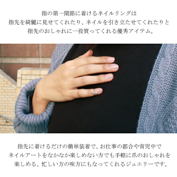 ネイルリングは指先(爪の部分)でお使い頂けるシルバーリングです。フリーサイズのリングなので、装着後に自由にサイズを調整することができます。