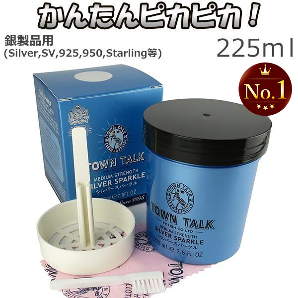 シルバー磨き 液体 シルバークリーナー 洗浄液 225ml 磨きクロス 布 TOWN TALK タウントーク 銀製品 お手入れ アクセサリー