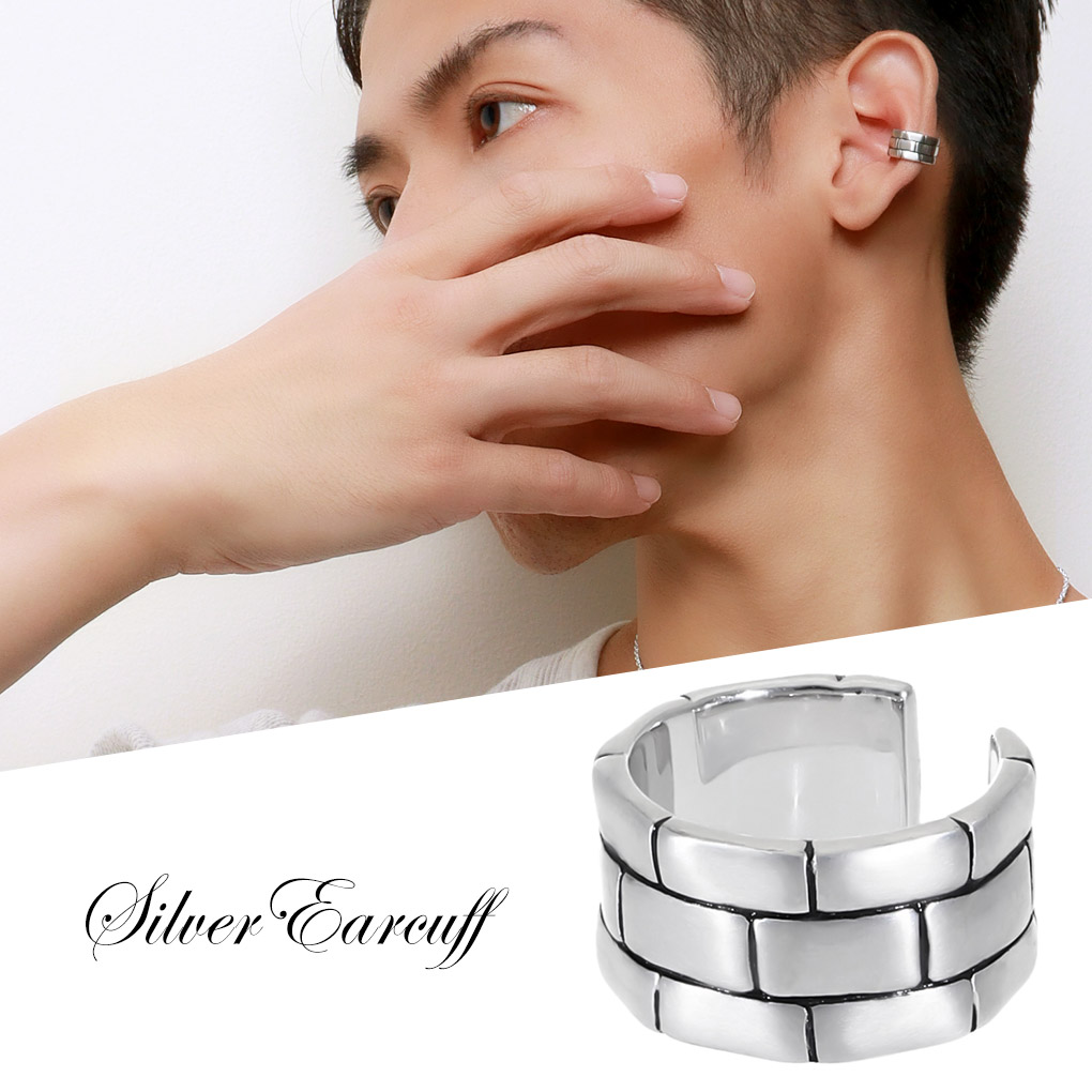 マット仕上げ レンガ模様 シルバー イヤーカフ 1P 片耳 シルバー925 ノンホールピアス シンプル レンガ 煉瓦 ブロック 模様 パターン 石壁 カジュアル 爆買
