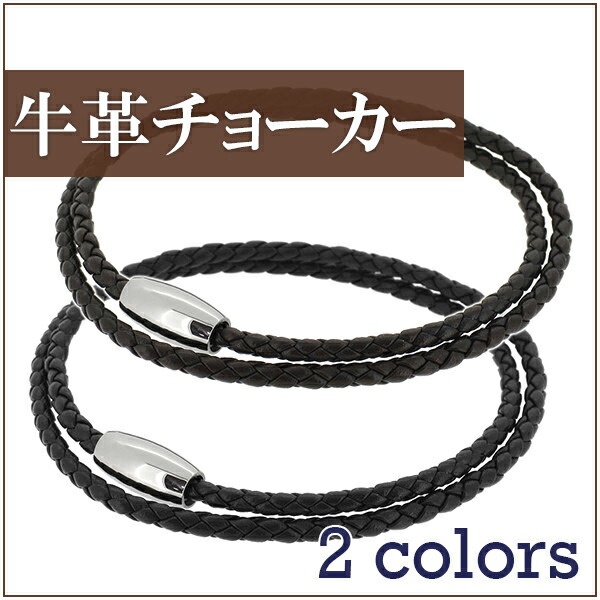 編み 牛革チョーカー 焦げ茶or黒 40cm 45cm 2.6mm 革ひも 革紐 ネックレス ネックチョーカー 天然皮革 ステンレス ブラック ダークブラウン こげ茶 爆買