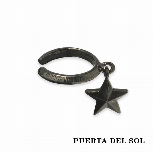 PUERTA DEL SOL スター 揺れる ブラック イヤーカフ ブラック シルバー950 チタンコーティング ユニセックス シルバーアクセサリー 銀 SV950