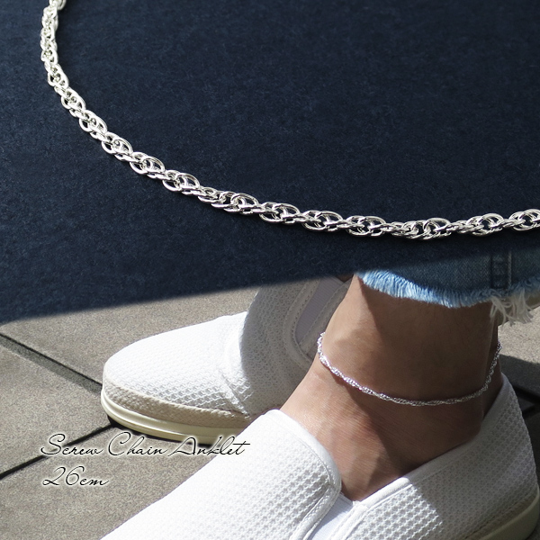 スクリューチェーン シルバーアンクレット 26cm アンクレット シルバー925 銀 足首 シンプル チェーン さりげない 男性 女性