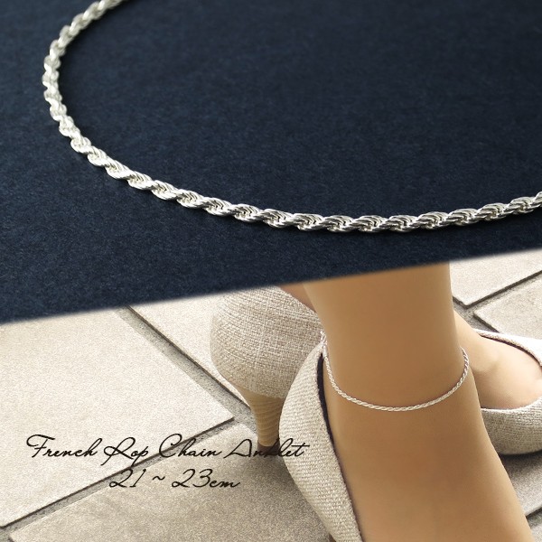 アンクレット レディース シルバー シンプル ロープチェーン かわいい 鎖 縄 カットフレンチ アクセサリー 足首 シルバー925 夏