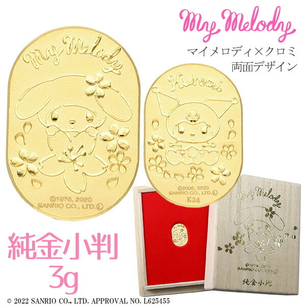 マイメロディ クロミ 純金小判 3g サンリオ マイメロ 純金 小判 K24 ゴールド 純金製品 開運 ライセンス コレクション レディース 女性