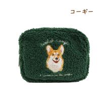 在庫限り ボア刺繍ポーチ シュナウザー/コーギー/プードル 犬雑貨・犬グッズ・可愛い・小物ポーチ