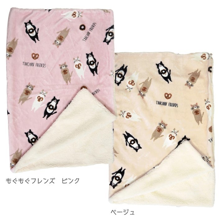 在庫限り ボア付きデジプリブランケット モグモグフレンズ 猫雑貨・ネコグッズ・シロネコ・グレイキャット・ハチワレ・マイクロフランネル