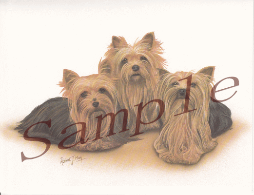 繊細なタッチでリアルに描かれているヨークシャー・テリアのイラストが美しい グリーティングカード。