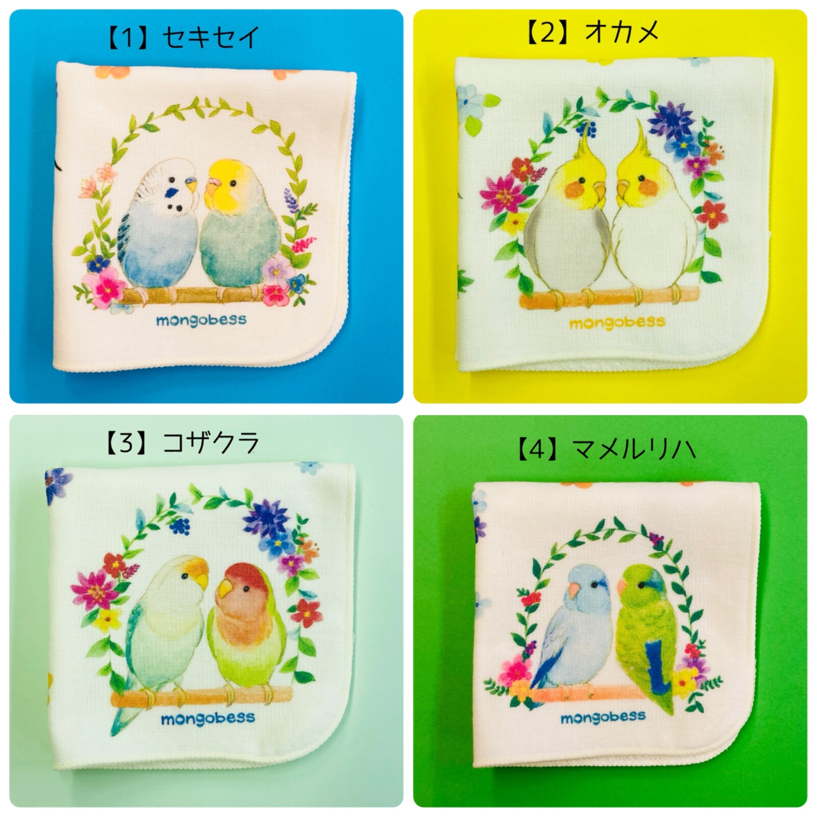 ☆ハンカチ☆ BirdCageシリーズ 鳥雑貨・ことりグッズ☆セキセイインコ★オカメインコ★コザクラ★マメルリハ☆