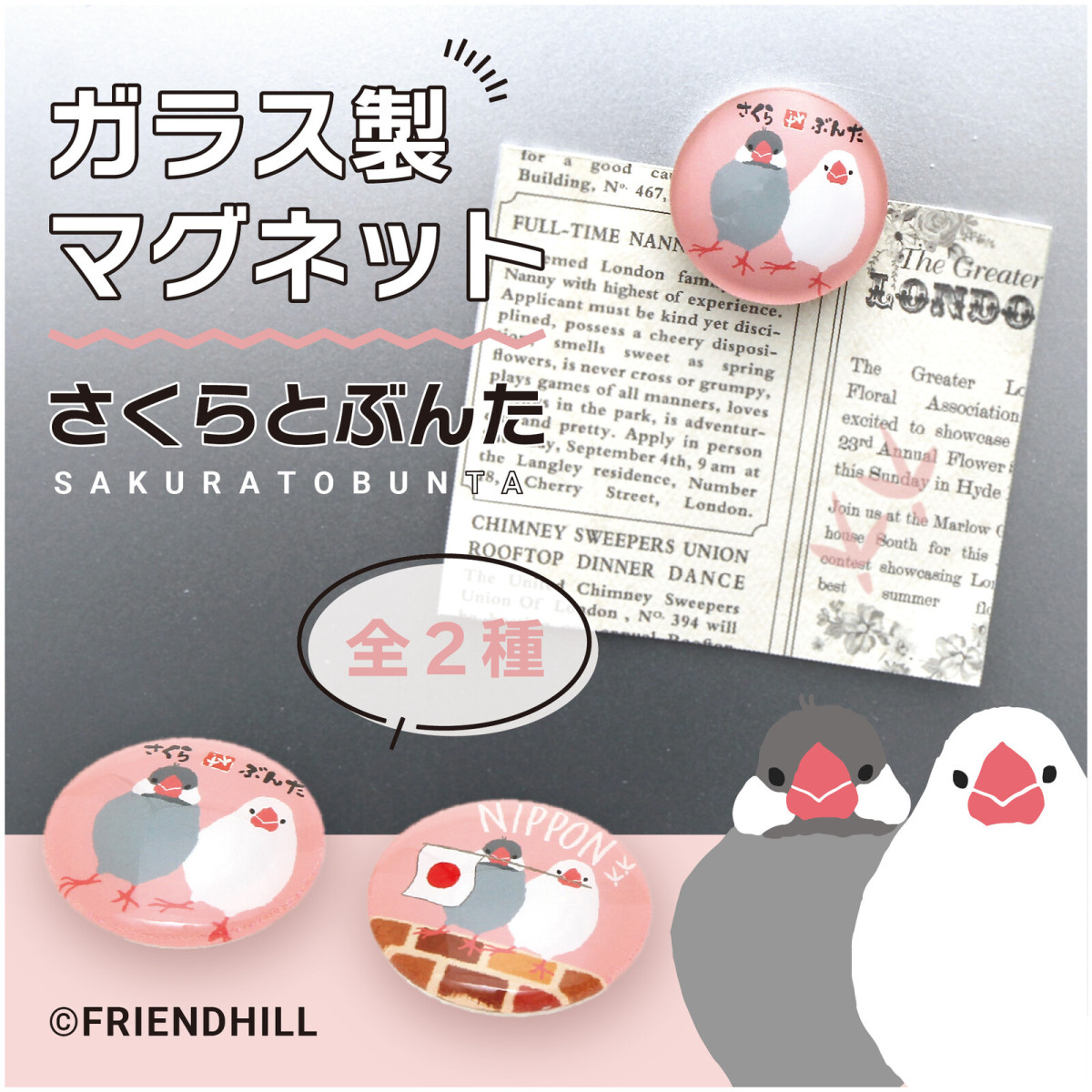 在庫限り さくらとぶんた ガラスマグネット 鳥雑貨・とりグッズ・トリ・文鳥