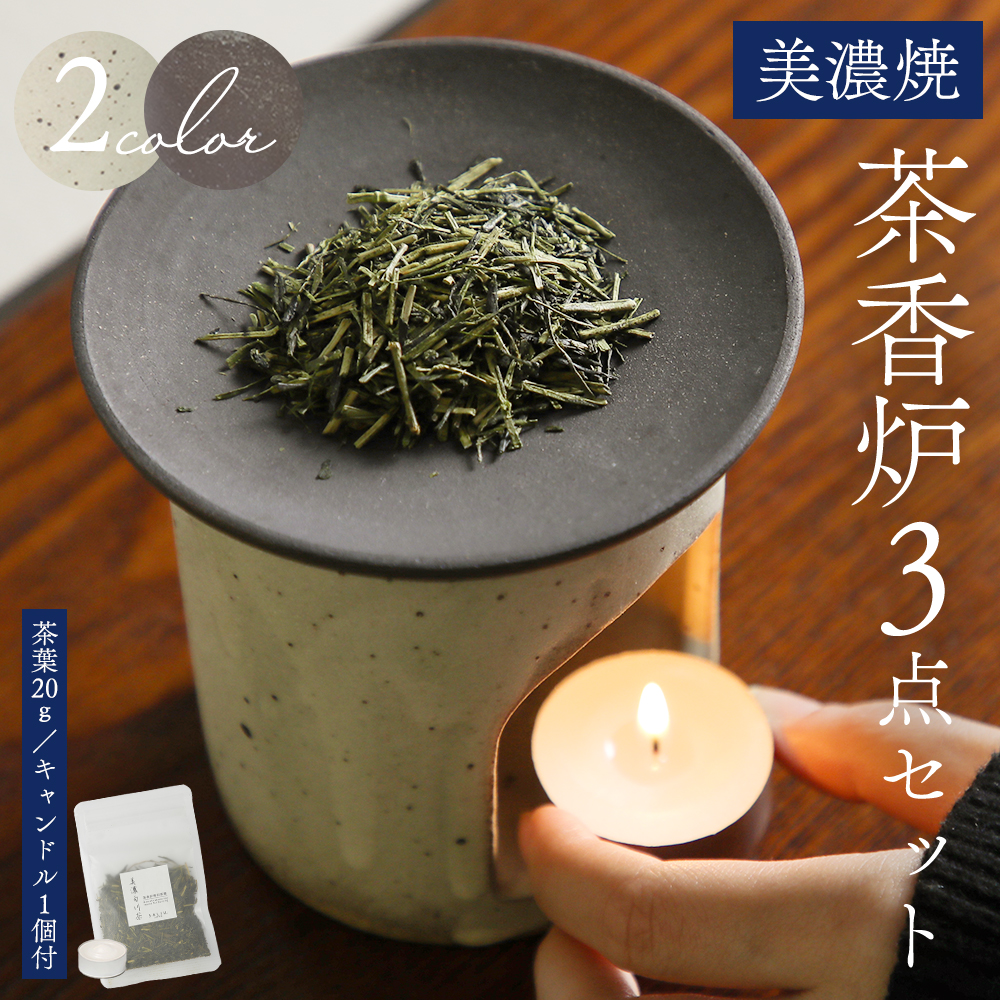 お茶の香りを楽しむ道具、茶香炉。こちらは陶器の有名ブランド美濃焼きで作られており、香り高い岐阜県東白川村の美濃白川茶がセットされていますから、届いたその日に茶香炉を楽しむことができるセットです。