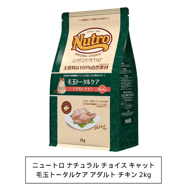 | 商品説明 | 毛玉が気になる愛猫のために、高品質な自然由来の食物繊維をバランスよく配合し、毛の排出をサポート。また、皮膚・被毛や腸内環境*の健康維持に配慮しています。 *食物繊維含有 ニュートロ ナチュラル チョイス キャットドライフードは厳選した自然素材を使用しています。厳しい独自の検査基準を設け、原材料の品質、均一性、安全性の確保に向けて厳格な検査を行っています。世界のペット栄養学をリードするウォルサム研究所の知見を基に、猫のライフスタイルに合わせて、最適な素材、最適な栄養バランス、高い嗜好性と消化性を実現し、愛猫の健康維持をサポートします。 ※沖縄県及び島嶼部等は、佐川急便の中継料が発生致します。実費負担願います。 ※リニューアルに伴い、パッケージ・内容等予告なく変更する場合がございます。予めご了承下さい。 |
