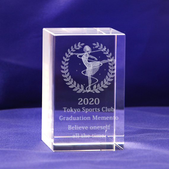 大会表彰 記念品 バレエ 新体操 ダンス 名入れ メッセージ彫刻 3Dバレエ クリスタルペーパーウェイト ガラスブロック 高さ80mm 彫刻代込み /NKTR-0057