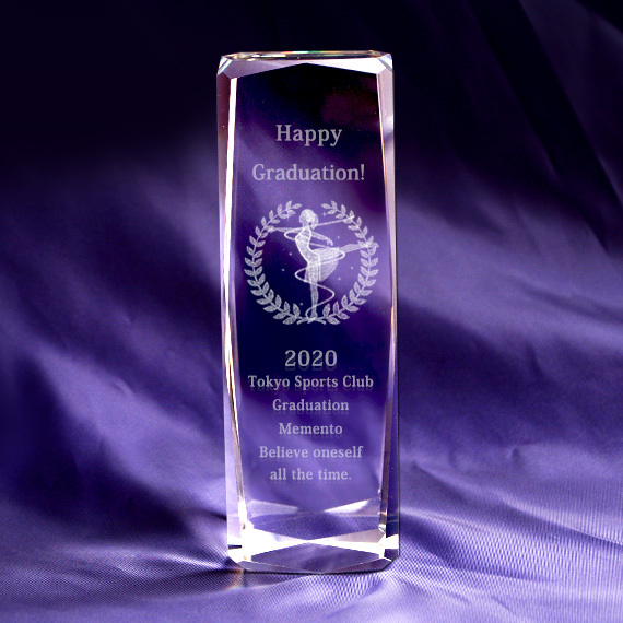 大会表彰 記念品 バレエ 新体操 ダンス 名入れ メッセージ彫刻 卒団記念品 トロフィー 3D クリスタルオブジェ 高さ150mm 彫刻代込み /NKTR-0067