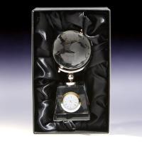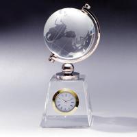 クリスタル地球儀 ゴールド時計 メッセージ彫刻 記念品 新築 退職 還暦 (彫刻代込み) /NKTR-0572金