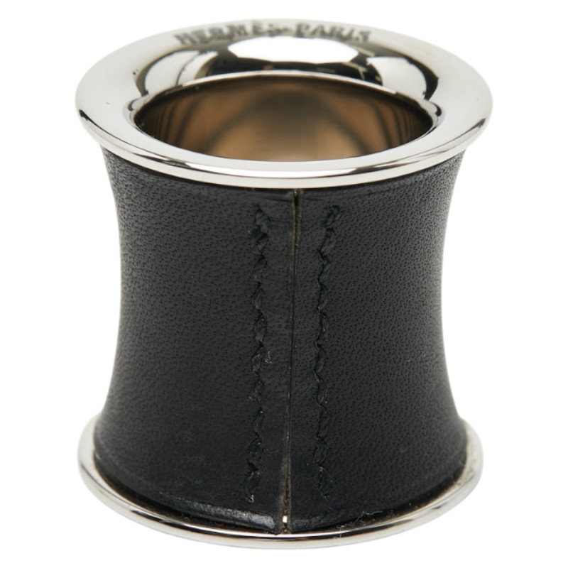 エルメス 筒型 スカーフリング シルバー ブラック メタル レザー レディース HERMES 【中古】