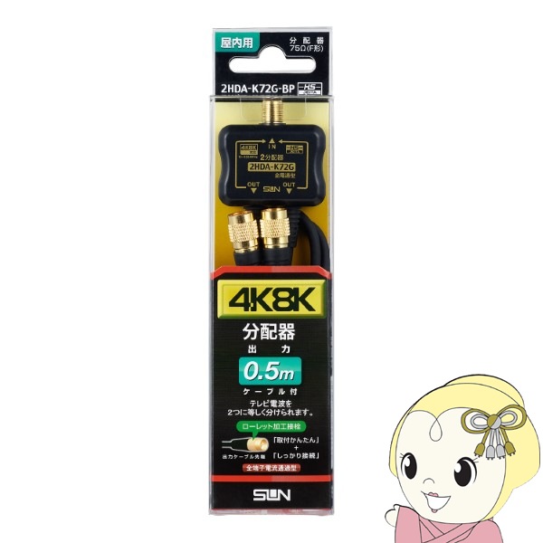 サン電子 ローレット加工接栓型 ケーブル付分配器 2HDA-K72G-BP