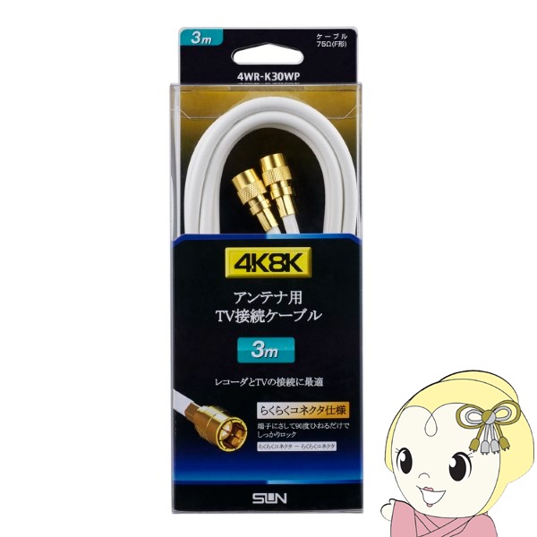サン電子 新4K8K衛星放送対応 テレビ接続ケーブル 3m 4WR-K30WP