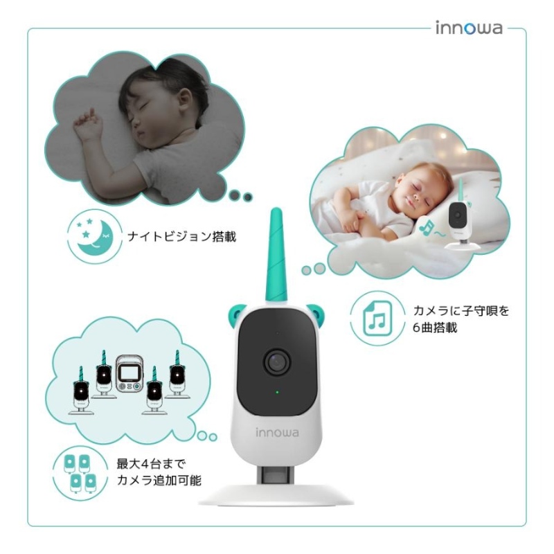 カメラは4台までinnowa ベビーモニターに接続できます。