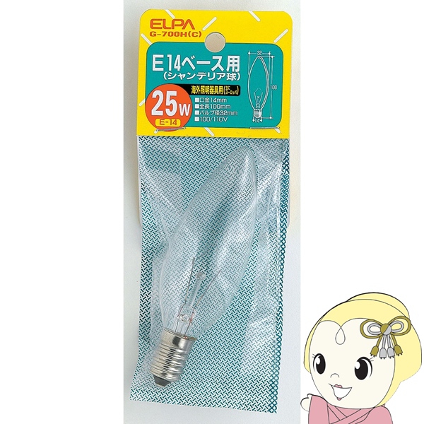 ELPA エルパ シャンデリア球 E14ベース用 25W E14 クリア G700H-C