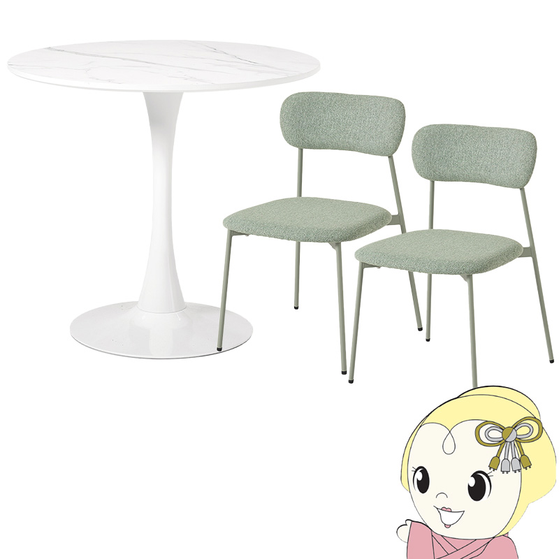 ダイニングテーブルセット 2人用 円形 丸 韓国風 ミッドセンチュリー おしゃれ 食卓 カフェ デスク 机 80cm 大理石模様 マーブルホワイト/グリーン