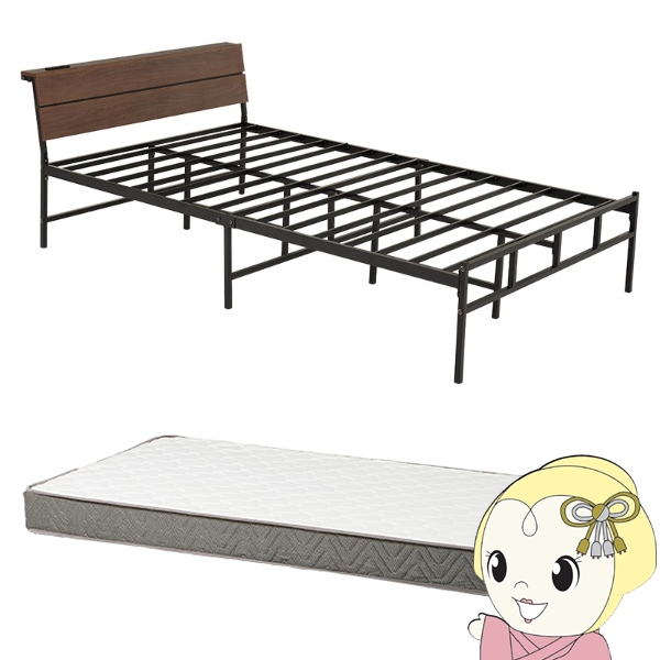 マットレス付セミダブルベッド ボンネルコイルマットレスセット スチールフレーム ベッド 寝具 寝室 新生活 一人暮らし シンプル 2口コンセント付