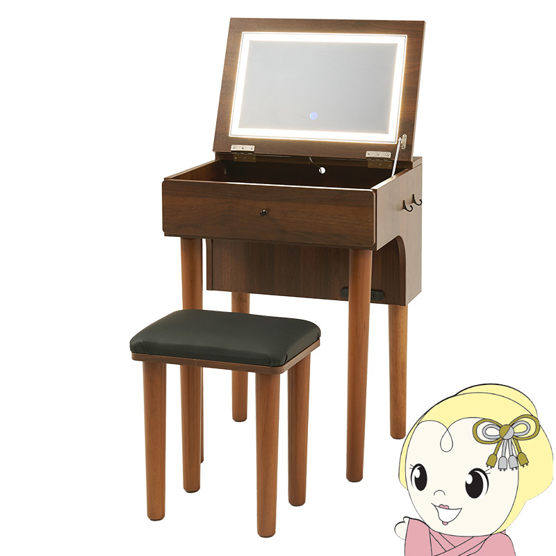 ドレッサー メイクデスク 化粧台 鏡台 おしゃれ かわいい ナチュラルモダン コスメボックス 女優ライト LED照明 スツール付き ダークブラウン