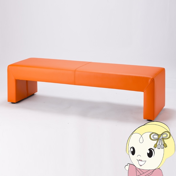 【法人限定/直送】ロビーチェア 3人掛け 背なし 幅150cm 完成品 待合椅子 レザー ベンチ 長椅子 病院 業務用 受付 オレンジ