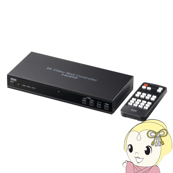 サンワサプライ ビデオウォールコントローラ 4K 4画面 HDMI分配器 1入力 4出力 Type-C対応 HDMIスプリッター VGA-PHD4VWC
