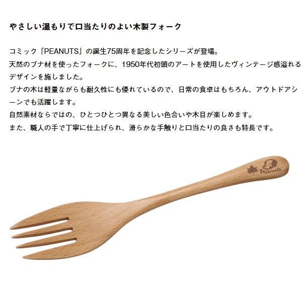 フォーク SNOOPY PEANUTS 75years 木製フォーク LOGOS ロゴス 86001138 ブナ材 木製カトラリー アウトドア キャンプ スヌーピー/srm