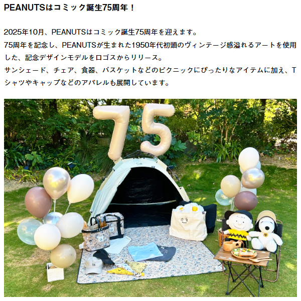 コミック「PEANUTS」誕生75周年を記念し1950年代初頭のヴィンテージ感溢れるアートを使用したデザイン!