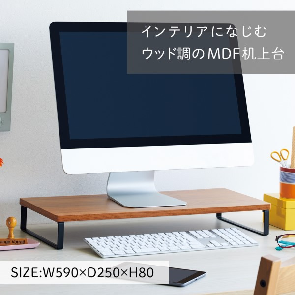 リヒトラブ MDFパソコン台・スタンダード<590×250・ロータイプ> ブラウン A8001-9