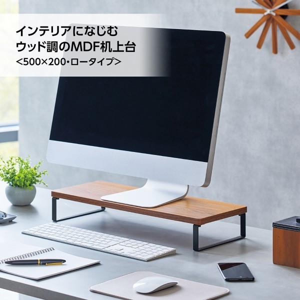 リヒトラブ MDFパソコン台・スリム<500×200・ロータイプ> ブラウン A8002-9
