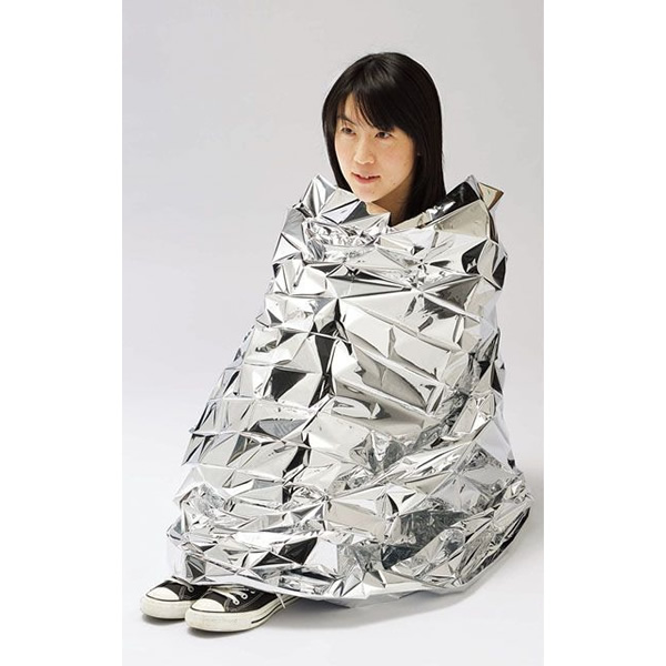 防寒用アルミシート、折りたためばポケットサイズになります。