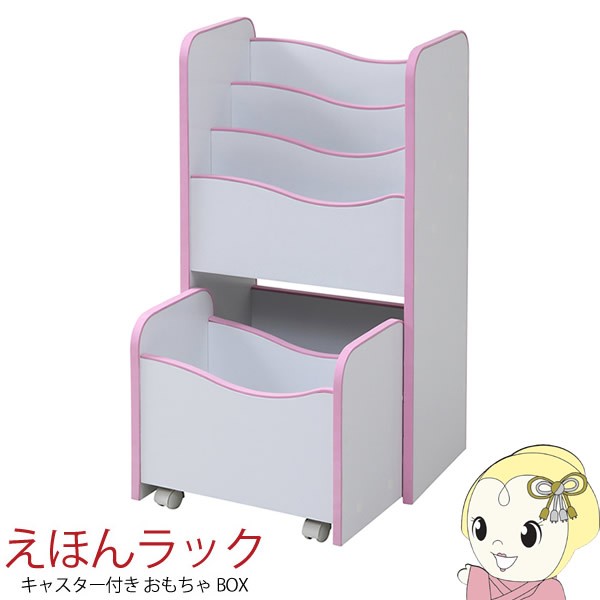 ソフトエッジで安全なキッズ 絵本棚 3段 おもちゃ絵本ラック 幅48 奥行29 高さ90 こども おしゃれ キャスター付きラック ピンク/srm