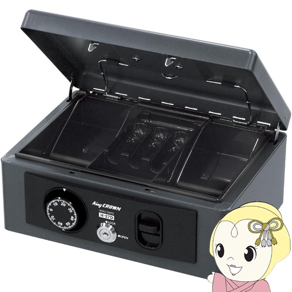 手提げ金庫 ダイヤル錠 シリンダー錠 二重ロック 日本アイ・エス・ケイ King CROWN キャッシュボックス ダークグレー 金庫 A5 H-27D/srm