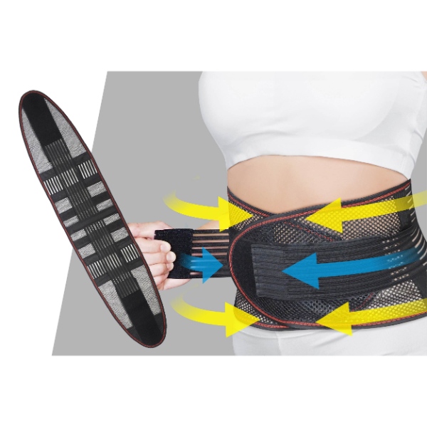 左右の補助ベルトを引っ張って「ピタッ」と装着。メッシュ構造で通気性も抜群!荷物運びや日常生活での使用はもちろん、運転やデスクワークなど、長時間の姿勢のサポートにもおすすめです。メイン&補助ベルトと5本の支柱構造で驚異のサポート!