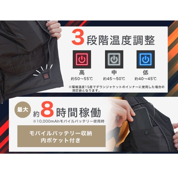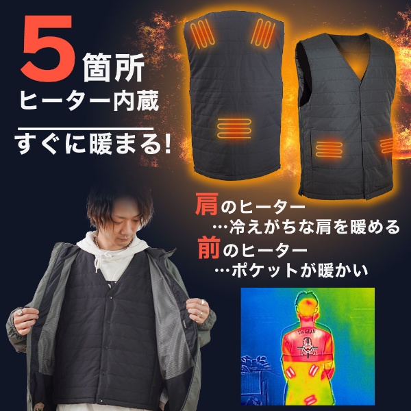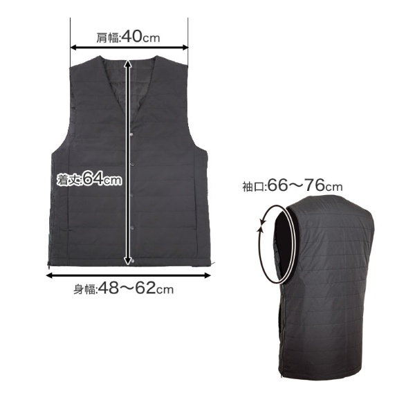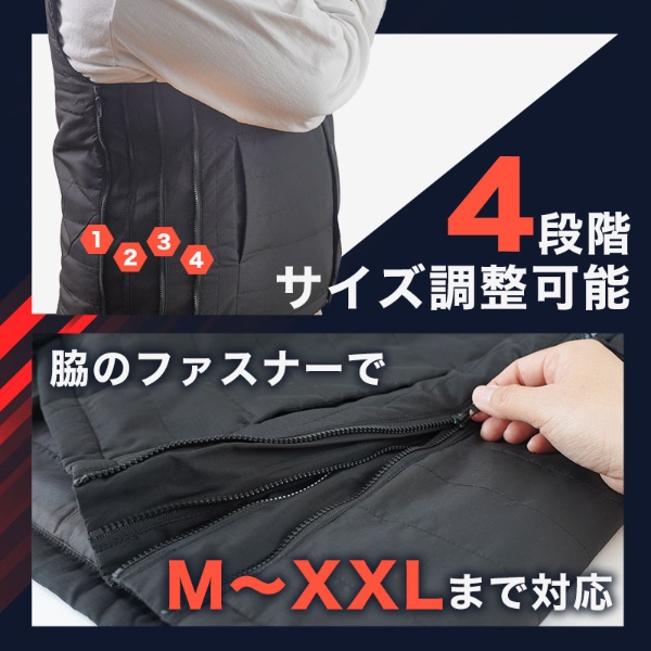 M〜XXLサイズまで調整可能。冬でも暖かい薄手のヒーター内蔵インナーベスト