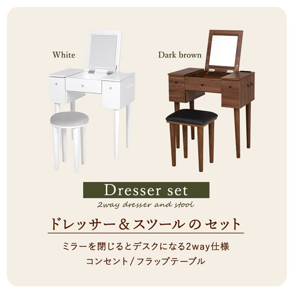 ドレッサー 鏡台 化粧台 ホワイト ミラー 2WAY デスク 収納 組立式 2口コンセント付 テーブル おしゃれ シンプル スツール 萩原/srm