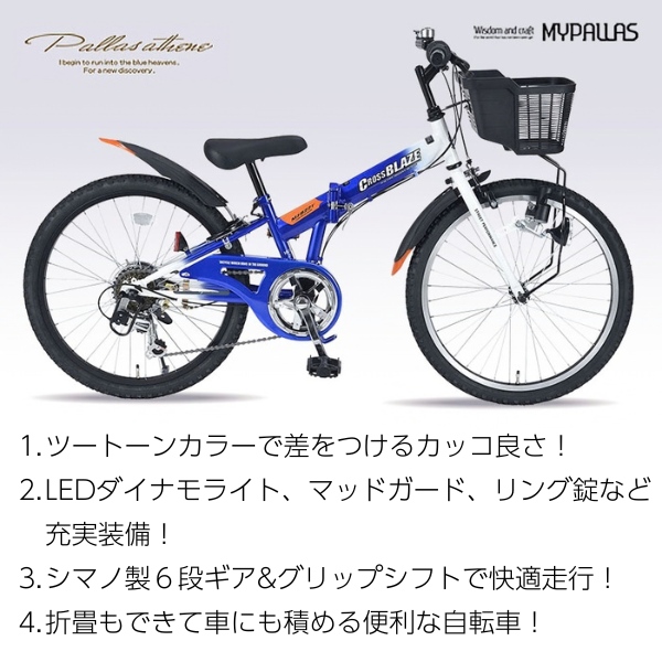 子ども用自転車 22インチ 折り畳み ジュニア マウンテンバイク MTB 6段変速 MYPALLAS マイパラス ブルー MJ-822F-BL/srm
