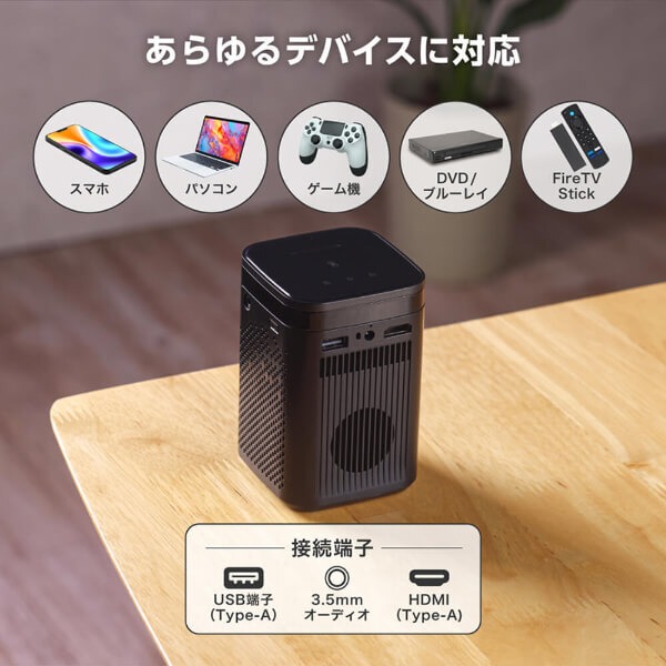 MAXZEN MP-D12HC-BK ブラック [ポータブル プロジェクター 家庭用 4K対応 Wi-Fi2.4G/5G 7000mAh Bluetooth5.2 Android11]